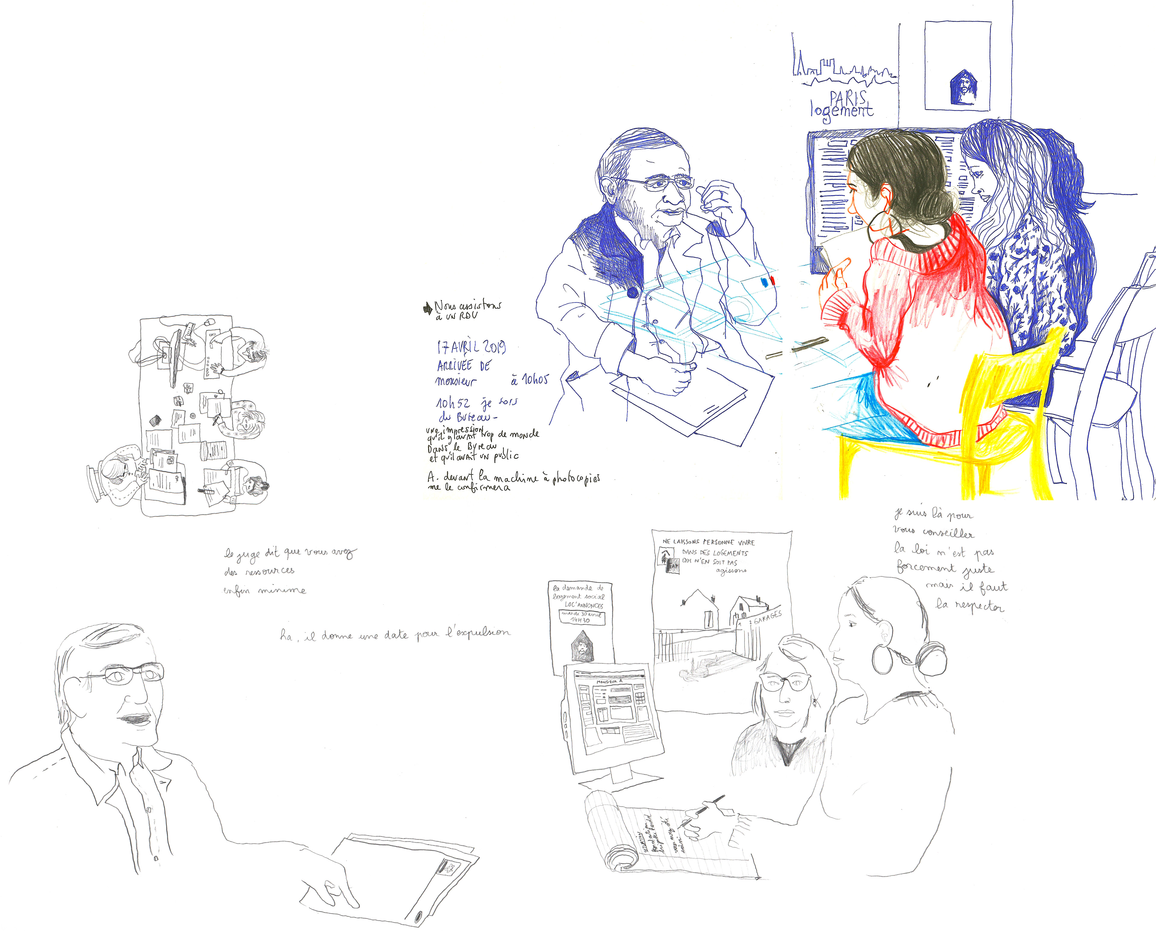 Coulisses d'un documentaire dessiné sur l'habitat et le mal-logement. Deux années de rencontres, d'échanges et d'ateliers participatifs en immersion à l'Espace Solidarité Habitat de la Fondation Abbé Pierre. [Regards croisés d'Anouk Migeon architecte-dessinatrice et Carole Chaix illustratrice]
